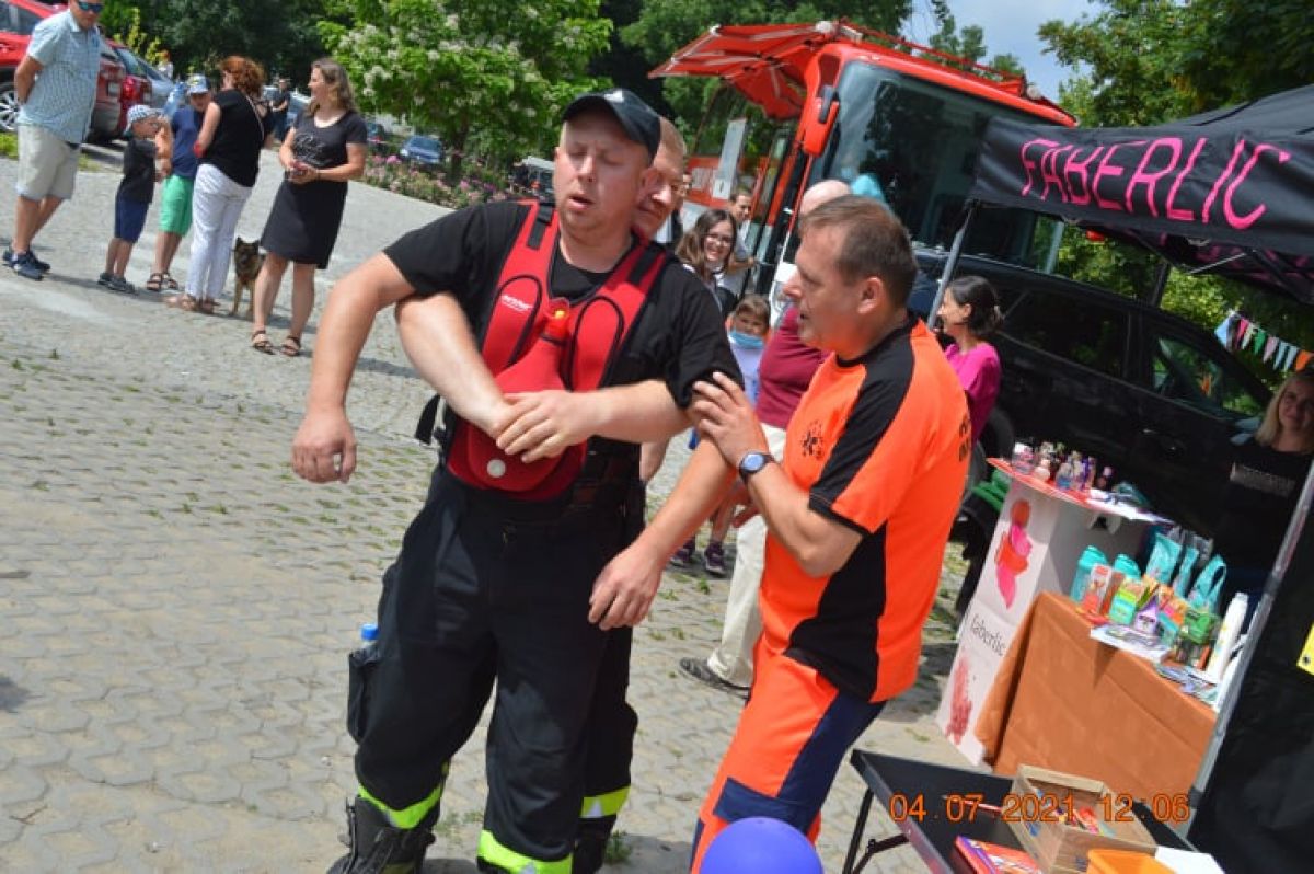 Nasi strażacy z OSP Kawęczyn w asyście ratowników medycznych pokazywali uczestnikom jak udzielać pierwszej pomocy i tłumaczyli wszystkim kiedy powinno się podjąć interwencję. Cały proces został pokazany na specjalistycznym fantomie reanimacyjnym, co pozwoliło w sposób pełny pokazać jak resustytacja krążeniowo-oddechowa powinna wyglądać. Nikomu nie życzymy znalezienia się w takiej sytuacji, ale jeśli tak się stanie, dzisiejsze szkolenie na pewno będzie pomocne i możliwe że pomoże uratować czyjeś życie.