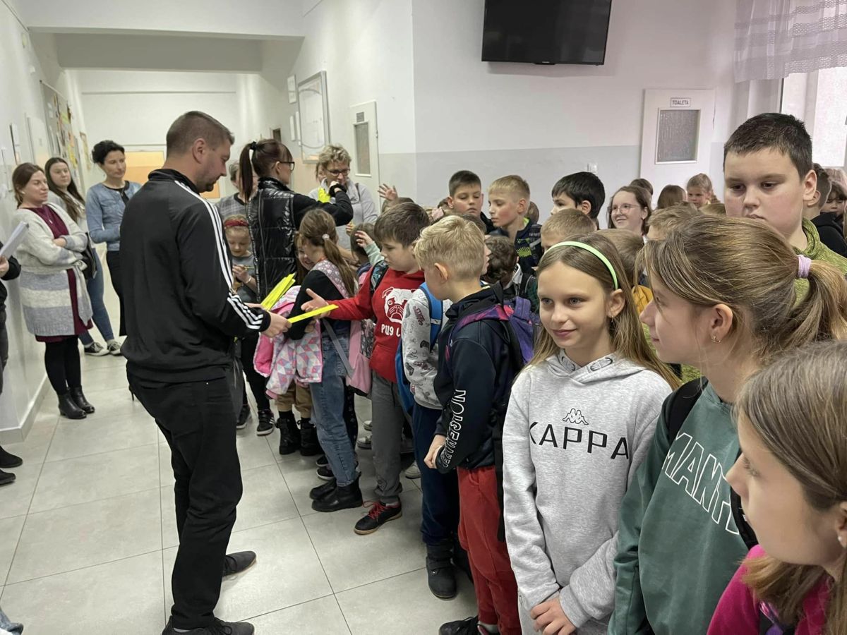 - Bardzo dziękuję za tę przemiłą niespodziankę. Zaprosiliśmy Was do nas po odblaski, a tu otrzymuję piękne życzenia i kwiaty. Bardzo dziękuję - mówił wójt do dzieci, częstując je słodyczami.