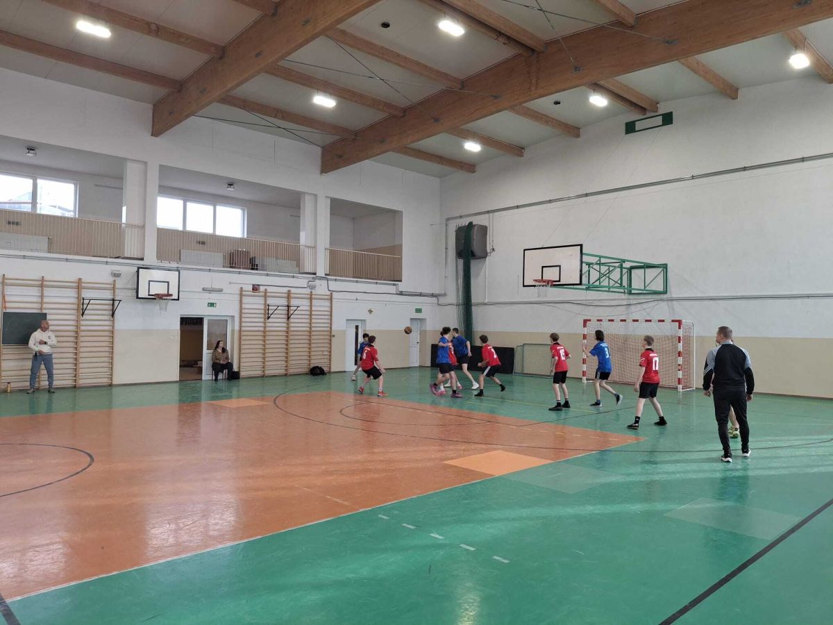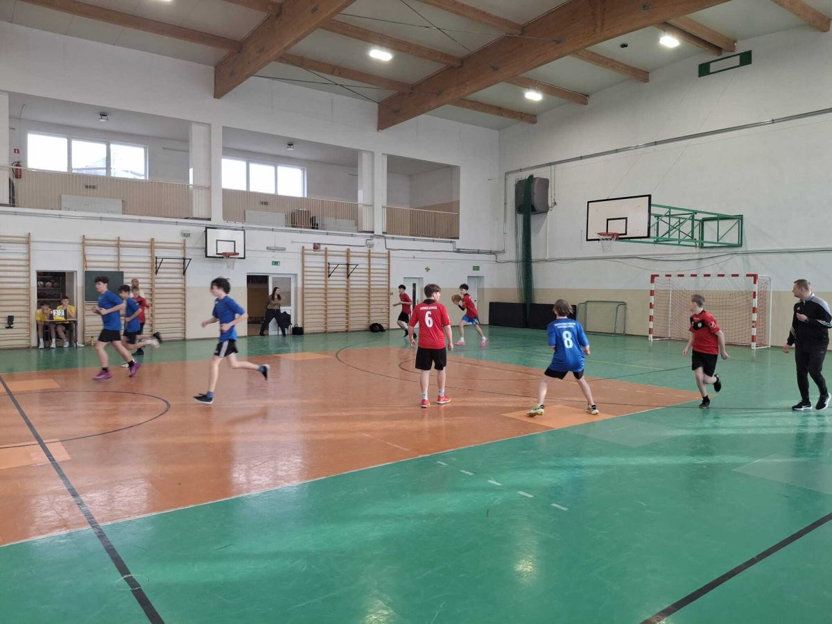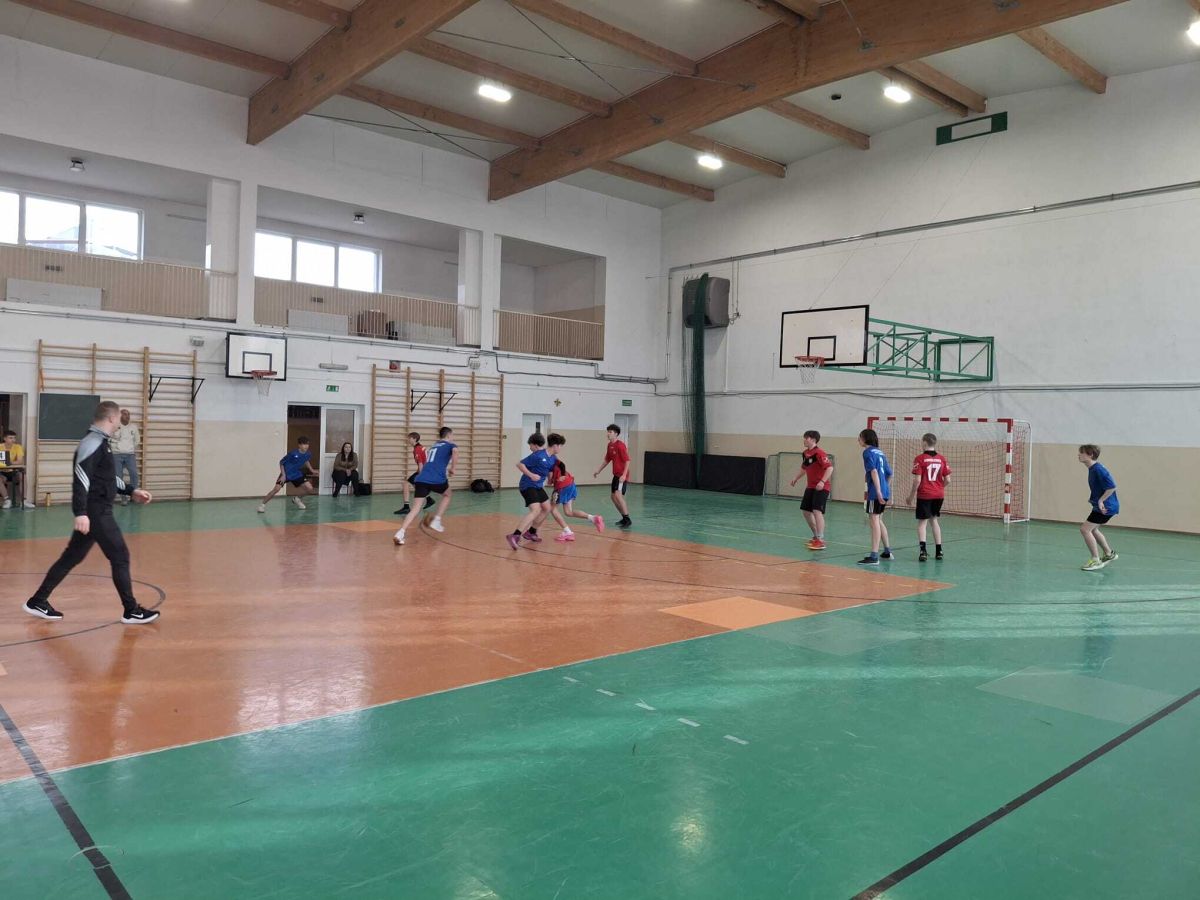 W gminnych zawodach sportowych szkół podstawowych rozegranych 13 grudnia 2025 roku brały udział po cztery drużyny dziewcząt i chłopców z klas 7-8.