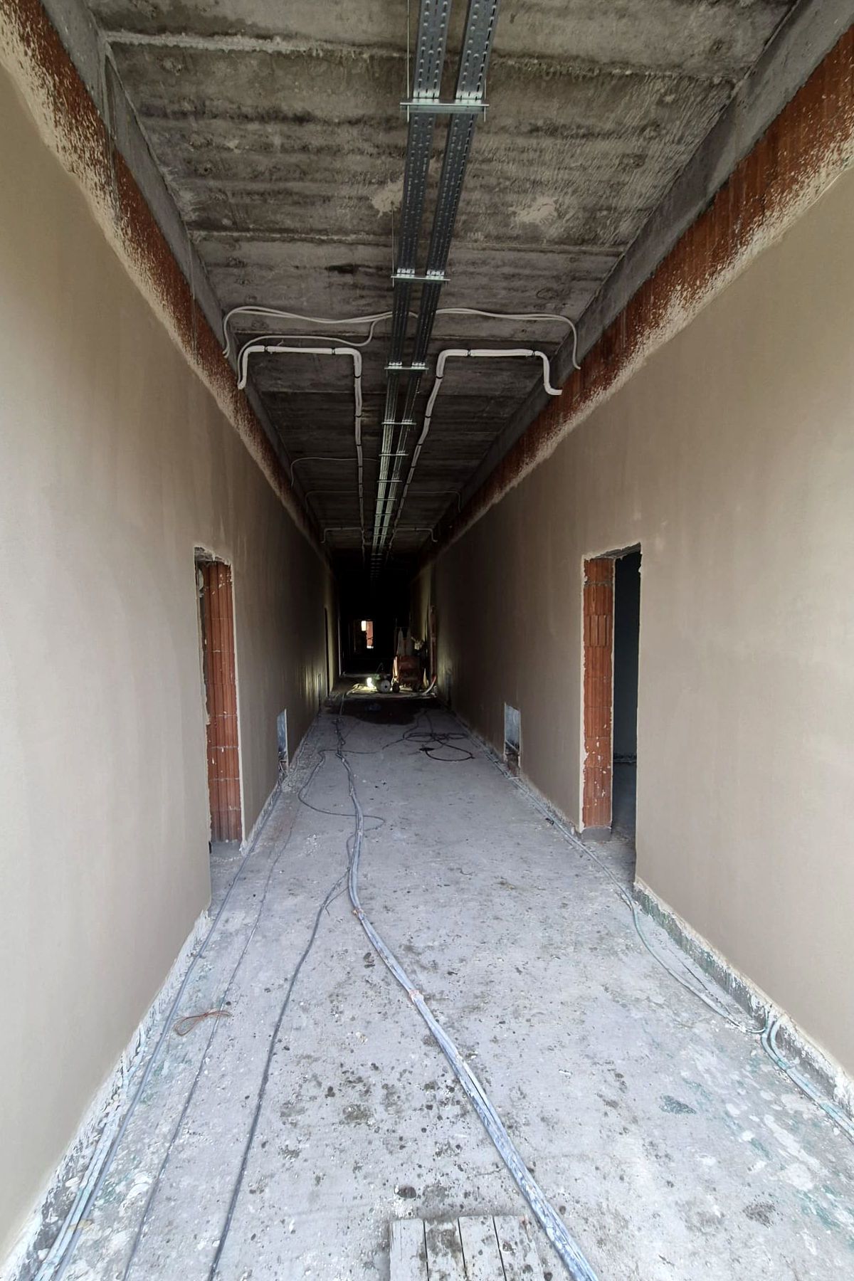 Zamontowano już stolarkę okienną, a prace przy elewacji – w miarę sprzyjających warunków pogodowych – posuwają się naprzód. Wewnątrz budynku trwają intensywne roboty instalacyjne: montowana jest instalacja elektryczna, sanitarna oraz system wentylacyjny. W pomieszczeniach sukcesywnie kładzione są tynki, które stopniowo nadają wnętrzom ostateczny kształt.