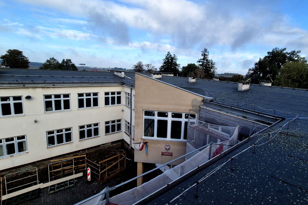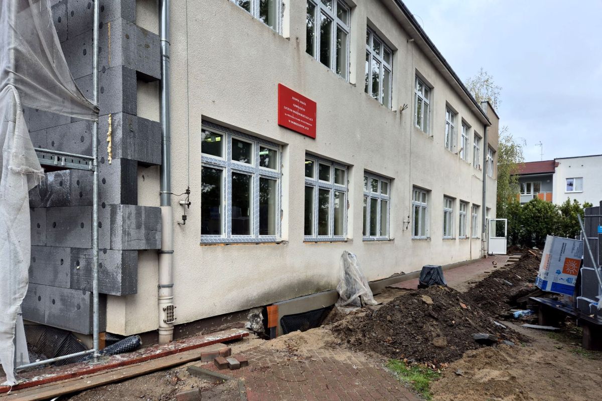 Prace przy termomodernizacji Zespołu Szkół w Dobrzejewicach sukcesywnie postępują. Po wymianie stolarki okiennej i modernizacji instalacji centralnego ogrzewania rozpoczęto etap ocieplania budynku.