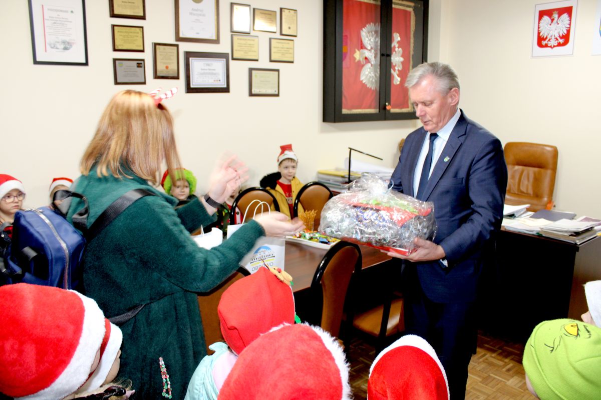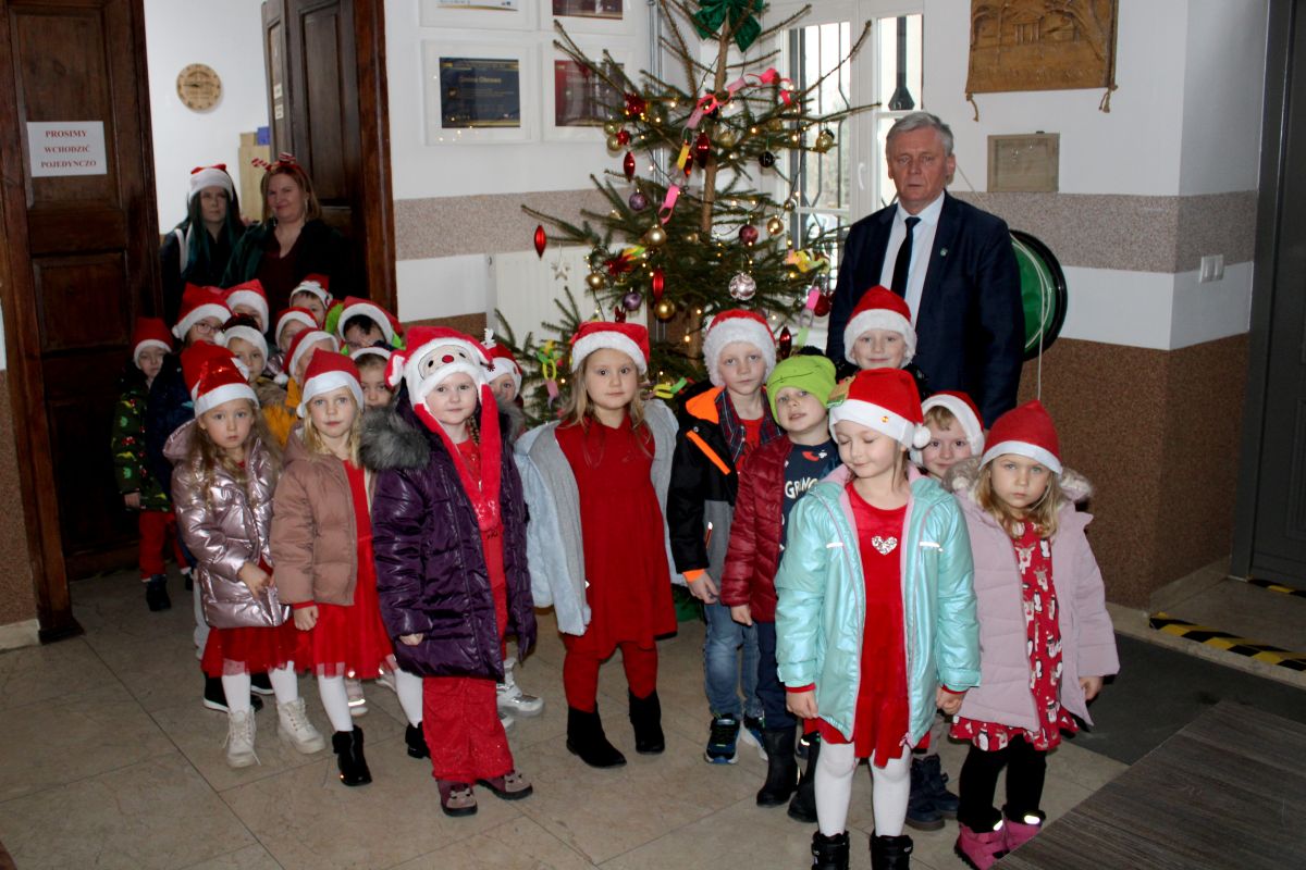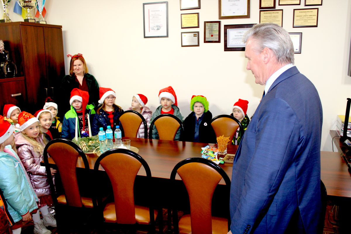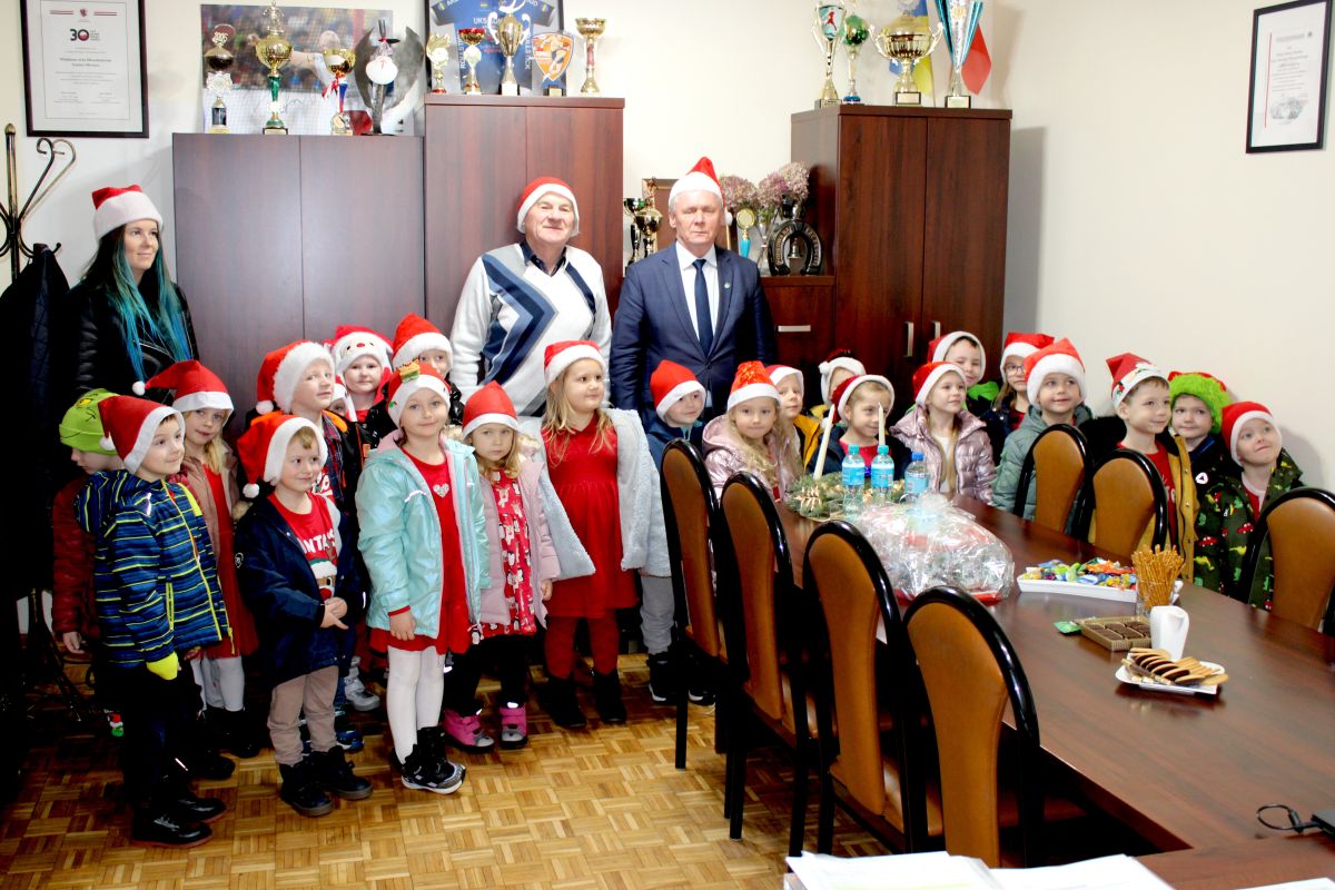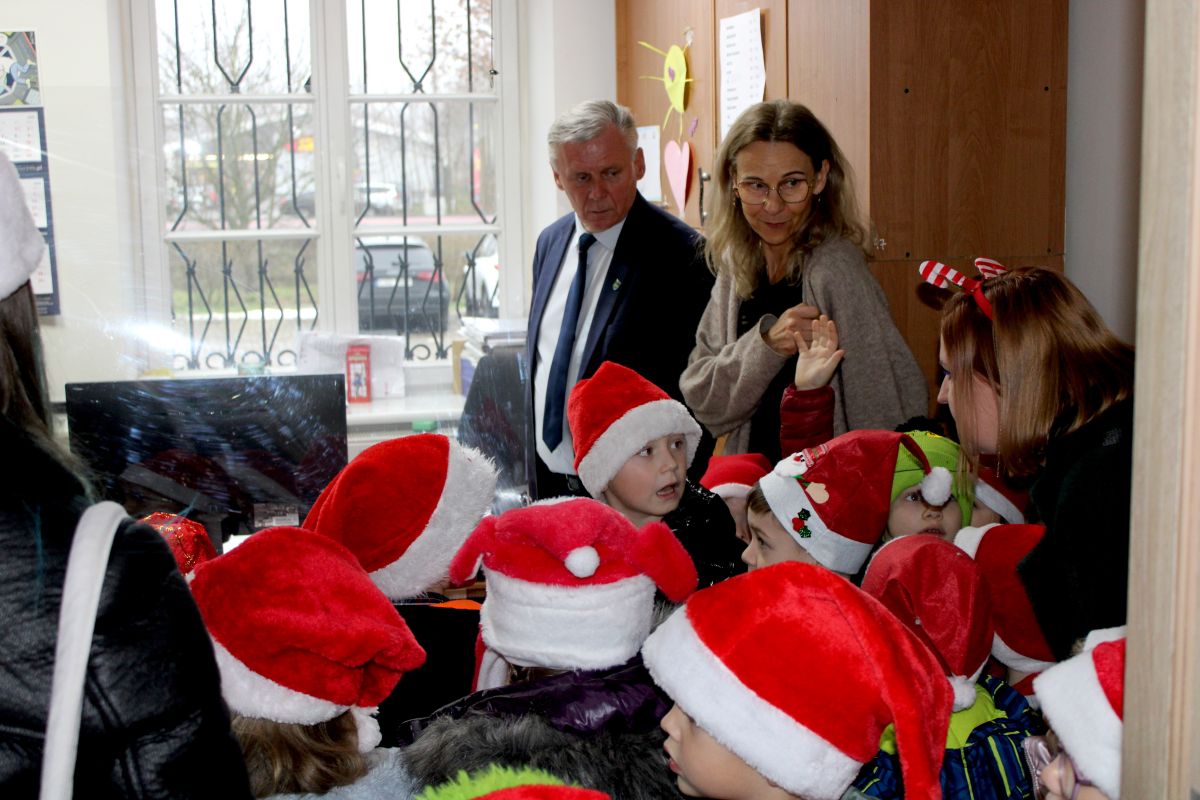 W piątek, 5 grudnia, do Urzędu Gminy w Obrowie zawitała wesoła gromada małych Mikołajów – 5-latków z Niepublicznego Przedszkola „Tęczowa Kraina” w Głogowie. Dzieci ubrane w czerwone czapki i pełne ciekawości przybyły, aby zobaczyć, jak wygląda praca w urzędzie „od środka”.