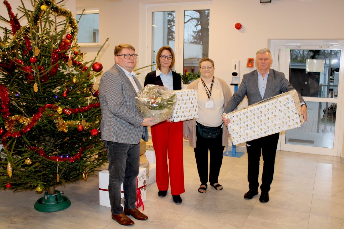 Podczas wizyty w DPS „Dom Kombatanta” w Dobrzejewicach wójt Andrzej Wieczyński wraz ze skarbnik Joanną Faleńską przekazali podopiecznym placówki świąteczny prezent, przygotowany z myślą o potrzebach seniorów zamieszkujących DPS. Spotkanie było także okazją do rozmowy z dyrektorem o codziennych potrzebach seniorów oraz o tym, jak ważne są chwile uwagi i obecności, które równie mocno budują radość, co materialna pomoc.