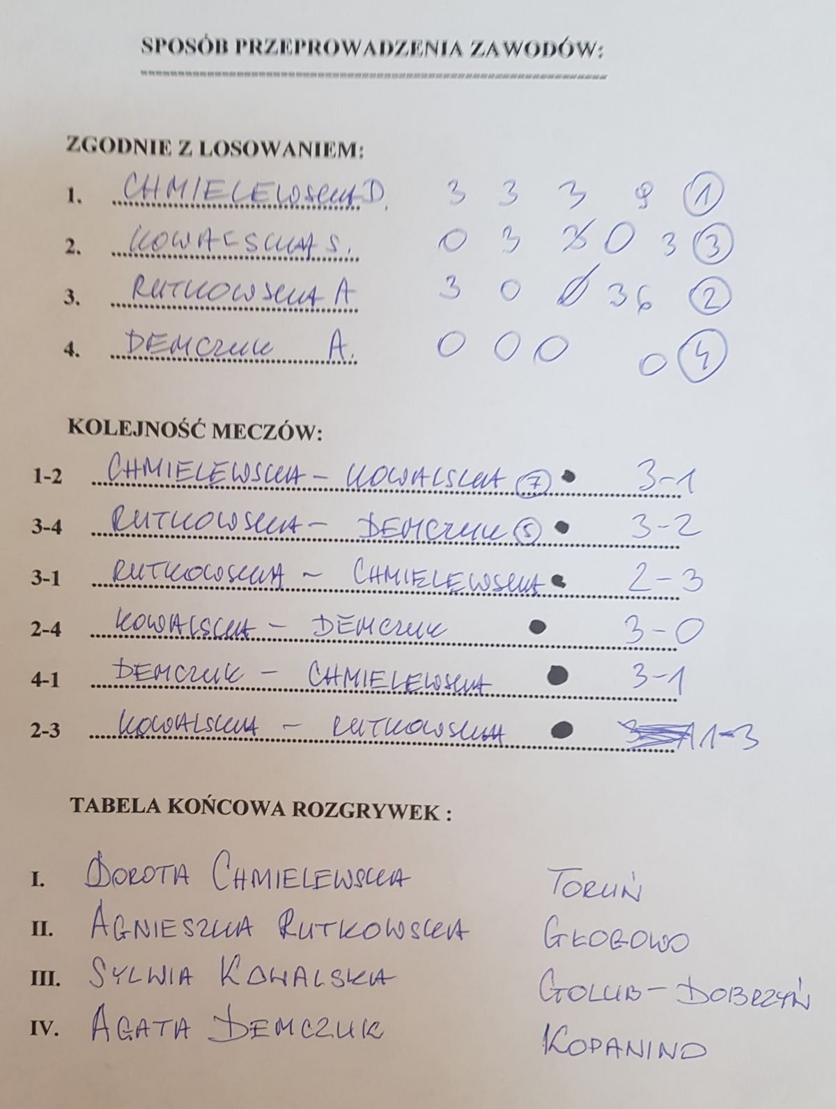 W gronie kobiet po siedmiu turniejach zwyciężyła Dorota Chmielewska z Torunia, przed Agnieszką Rutkowską z Głogowa i Sylwią Kowalską z Golubia-Dobrzynia.